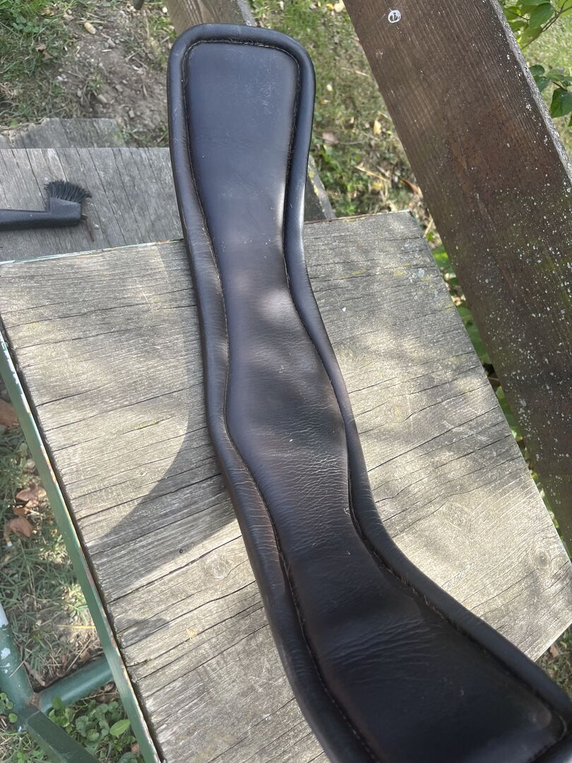 Obwód siodła - skórzany krótki obwód anatomiczny 60 cm - Sprzedaję mój skórzany krótki popręg (brązowy), ponieważ nie pasuje już na mojego konia. Był dobrze pielęgnowany, czyszczony / smarowany po każdej jeździe i noszony tylko kilka razy.
