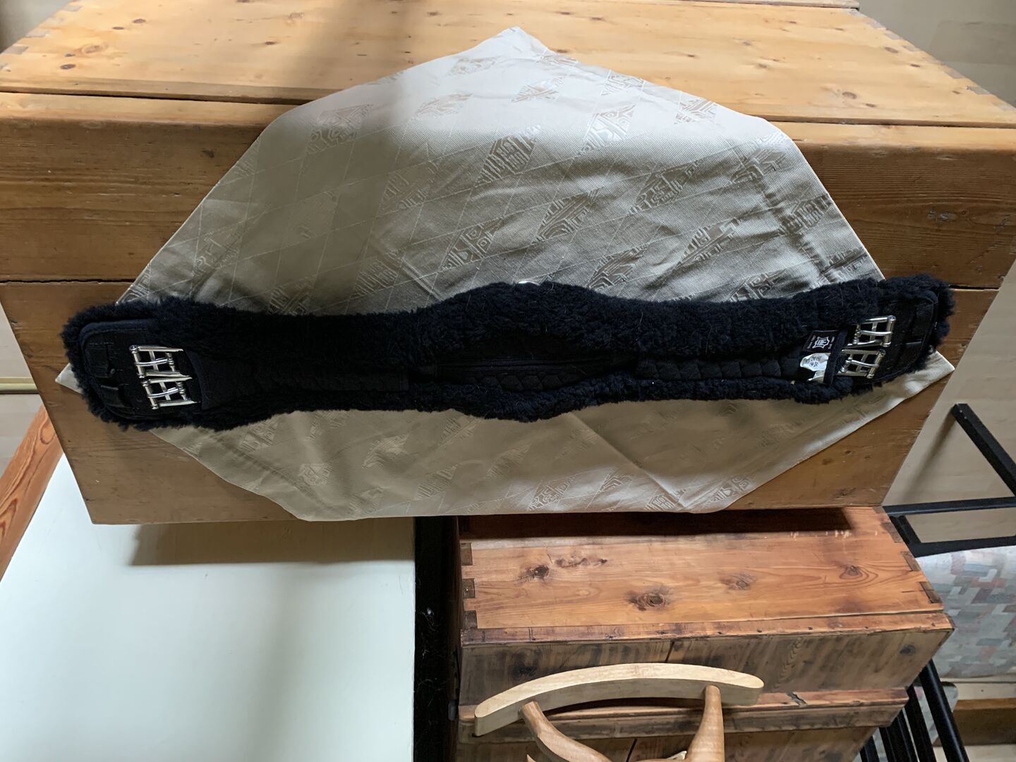 Obwód z matowej skóry jagnięcej, długi, anatomiczny - Ten 100-centymetrowy obwód ze skóry jagnięcej Mattes był używany tylko kilka razy i został świeżo wyprany w detergencie do skór jagnięcych. Anatomiczny krój zapewnia dużo miejsca na łokcie. Nasz wałach o wzroście 184 cm uznał go za bardzo wygodny. Jednak teraz, gdy przeszedł na emeryturę, już go nie potrzebuje.