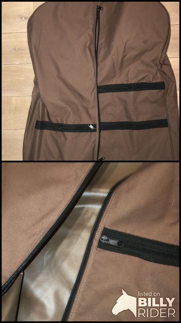 Ochraniacz na kurtkę z przegródkami zapinanymi na suwak - Brązowo-czarny ochraniacz na kurtkę turniejową; posiada kilka dodatkowych przegródek zapinanych na zamek błyskawiczny