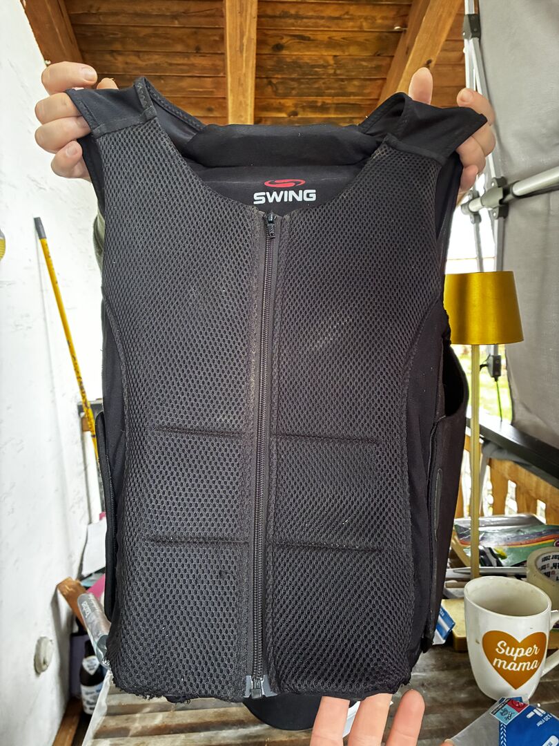 Ochraniacz pleców Swing rozmiar dla dorosłych (A-M) - Ochraniacz pleców (kamizelka) z zamkiem błyskawicznym i zapięciem na rzep po bokach dla optymalnej regulacji. Wszystko nienaruszone - używane