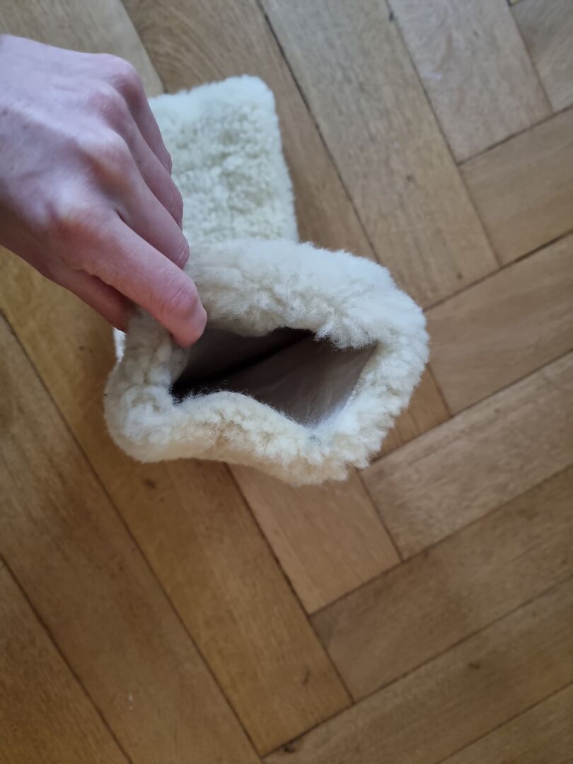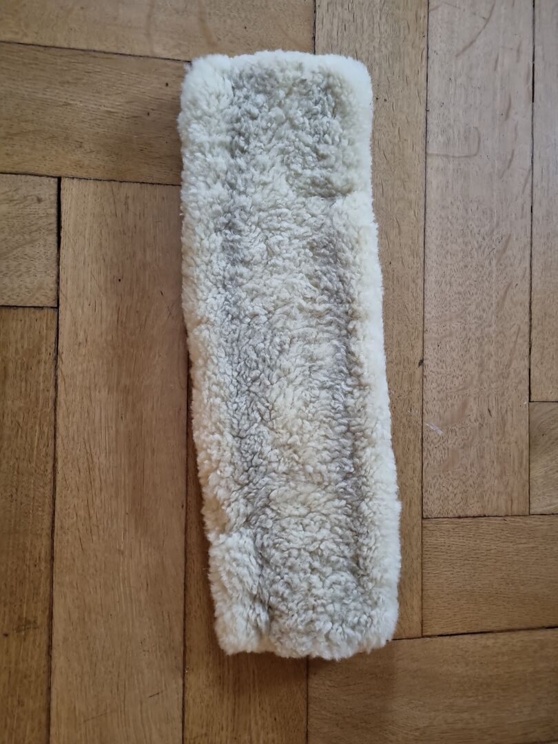 Ochraniacz popręgu ze skóry jagnięcej Loesdau - Bardzo dobrze zachowany i nadal bardzo ładny i puszysty. Była prana tylko przy użyciu specjalnego detergentu. Długość 45cm