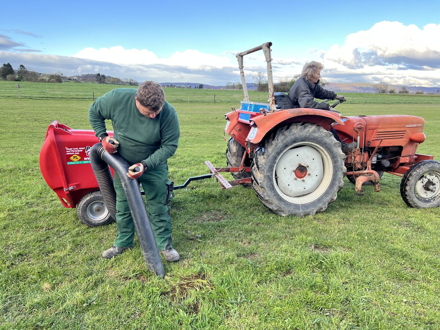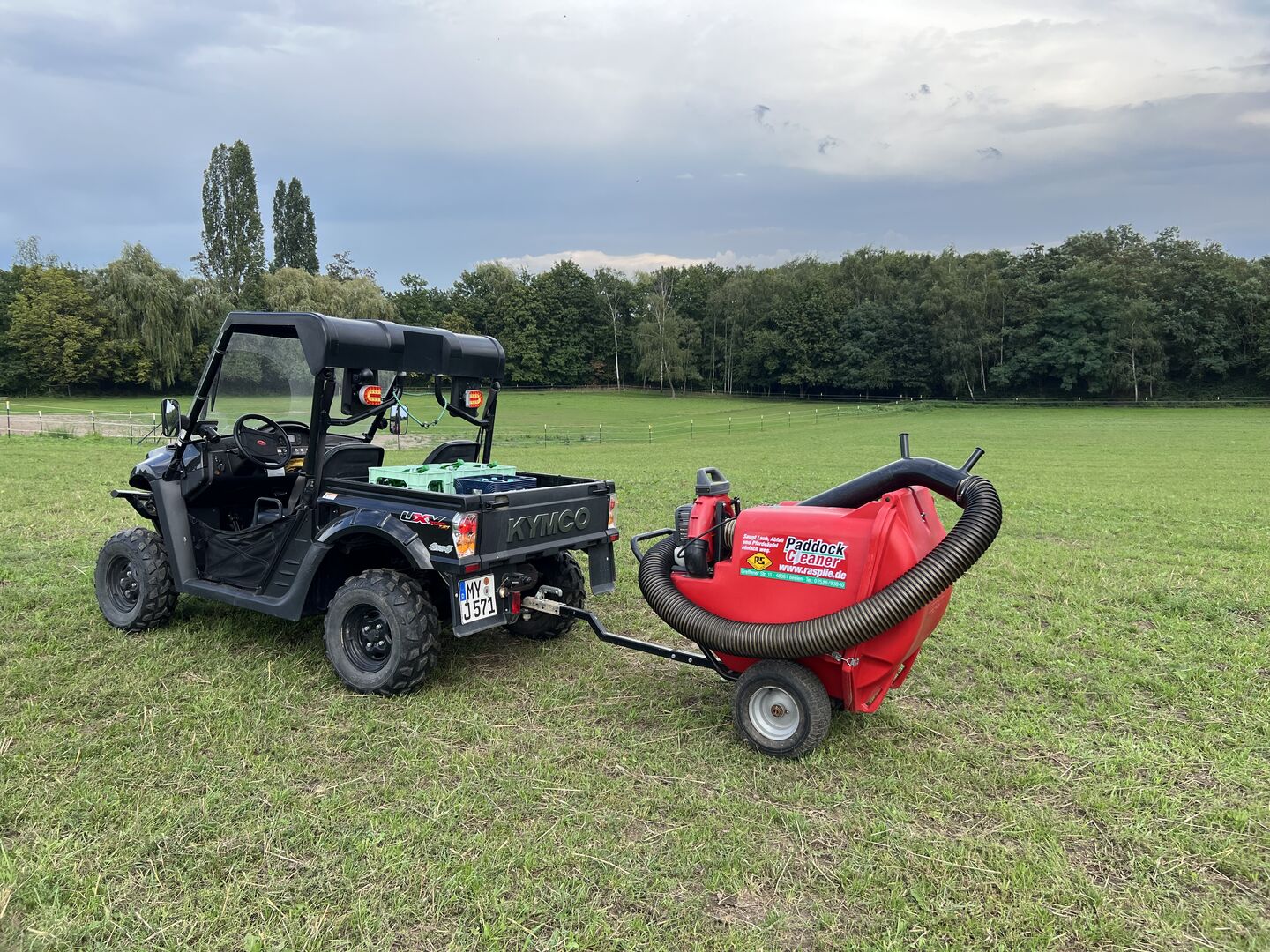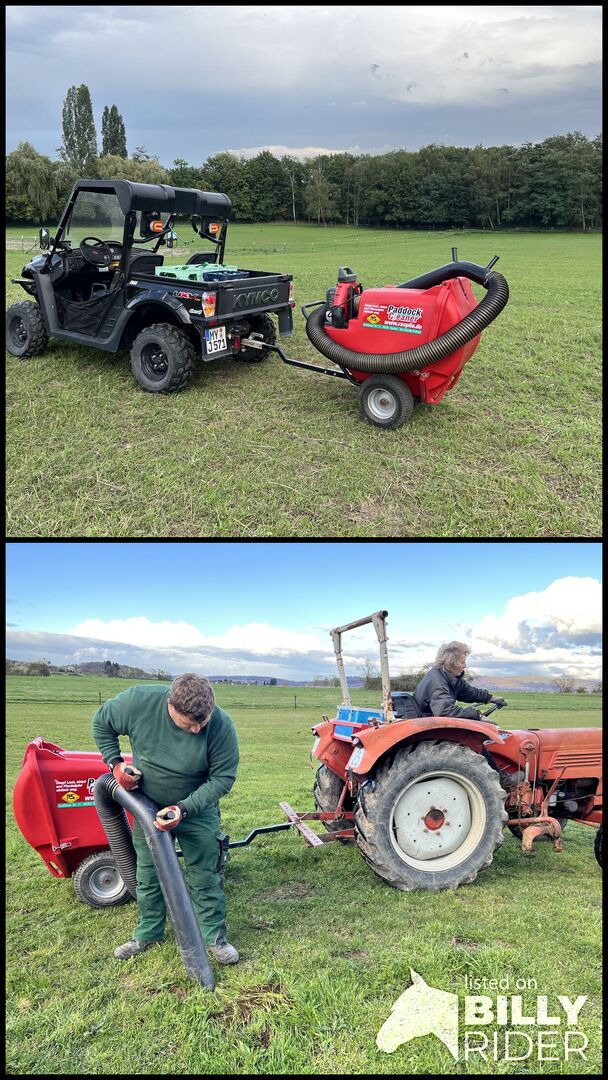 Odkurzacz do końskich odchodów dla padoków, stajni i pastwisk - Wielofunkcyjny odkurzacz do użytku wewnątrz i na zewnątrz budynków, np. do usuwania końskich odchodów, liści itp. Może być podłączony do traktorów lub Hoftrac, kosiarek samojezdnych lub quadów lub napędzany ręcznie, elastyczny wąż umożliwia pracę w pozycji stojącej, chodzącej i siedzącej Własny silnik Kawasaki zapewnia wysoką moc ssania Duża tylna klapa umożliwia łatwe opróżnianie Odkurzacz jest wykonany z grubościennego, odpornego na uderzenia tworzywa sztucznego