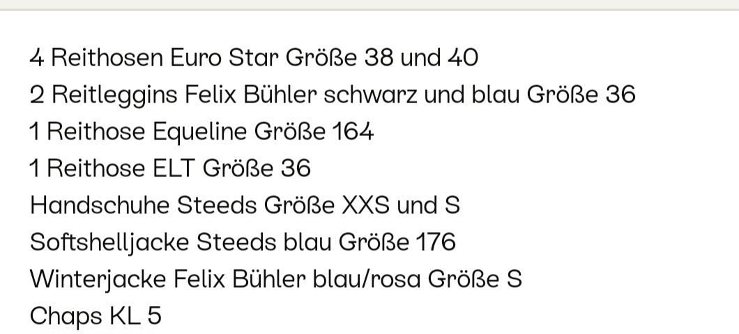 Odzież jeździecka - Lista patrz zdjęcie, do kupienia jako pakiet, ale także na sprzedaż indywidualnie, ceny wtedy na życzenie