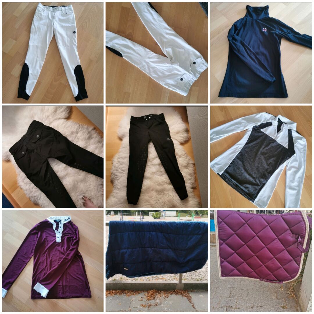 Odzież jeździecka różnych marek - Sprzedam tutaj różne rzeczy Z zainteresowaniem i dalszych informacji chętnie PN Krótko kilka kluczowych punktów : Spodnie : Rozmiar 38 ale mniejsze pasują na 36 Cena 85 Euro za sztukę Oryginalna cena 139,90 Euro Bluzki turniejowe rozmiar M Biała / kolorowa od laguso 40 Euro 1 x noszona jak nowa Bluza turniejowa Spooks czerwone wino 20 Euro Koc 155 cm 35 Euro Wszystkie ceny plus wysyłka