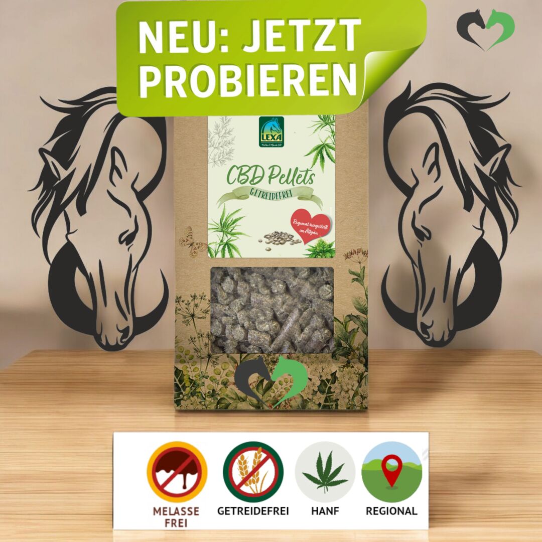 LEXA CBD Pellets są odpowiednie dla wszystkich koni od 3 roku życia, aby wspierać ogólne samopoczucie.