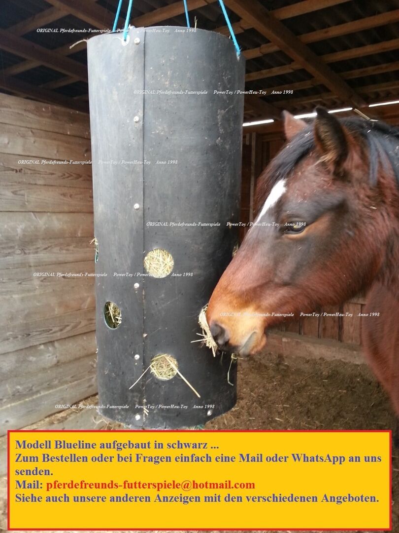 W razie pytań lub chęci zamówienia wyślij do nas maila. Informacje również na stronie www.pferdefreunds-futterspiele.de Zobacz również nasze pozostałe ogłoszenia. Wybrane przez nas materiały są niemal niezniszczalne przy odpowiednim obchodzeniu się z nimi. Model XL Pojemność ok. 120 litrów ok. 8 do 12 kg Wysyłka za 1 sztukę 7,99 € 2 do 3 sztuk 9,99 € od 4 sztuk 14,99 € Dokarmiając za pomocą PowerToy / PowerHeu - Toy wydłużamy czas karmienia zwierząt . Konie, które mają kaszel lub choroby płuc kaszlą mniej niż zwykle. Konie mają zapewniony ruch, są bardziej zrównoważone i mniej nerwowe. Niewłaściwe zachowania ustają, bo konie są zajęte. Straty paszy są zmniejszone o około 60 %. PowerToy / PowerHeu-Toy powoduje niewielki lub żaden odgłos stukania. Dlatego nadaje się również bardzo dobrze do dużych stajni. PowerToy / PowerHeu-Toy nie musi być zabezpieczony przed uderzeniem żadnymi pasami. Niemożliwe są prawie żadne obrażenia, ponieważ uwzględnione są z góry ustalone punkty przełamania. Wszystkie produkty są wolne od plastyfikatorów i dodatków lotnych. Nasze materiały spełniają najwyższe standardy zrównoważonego rozwoju środowiska i są dopuszczone do kontaktu z żywnością. Odporne na temperaturę do -25°C, więc nie ma mowy o odpryskach czy pękaniu. Odporne na promieniowanie UV i wszelkie warunki atmosferyczne zgodnie z najnowszym stanem rozwoju. Przekonaj się... Twój koń ci za to podziękuje.