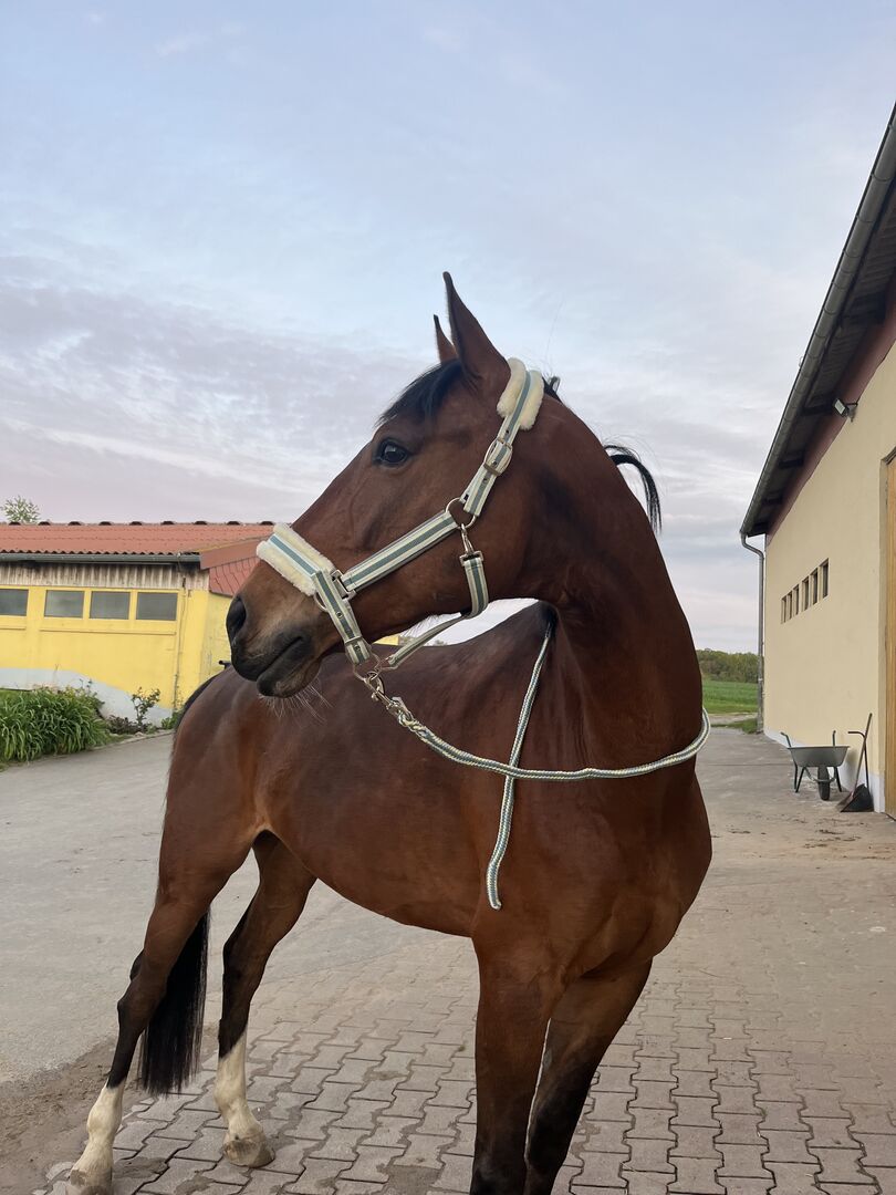 Campino to koń o silnym charakterze, który zawsze stara się zadowolić swojego jeźdźca. Niemniej jednak potrzebuje doświadczonej, prowadzącej ręki, która zapewni mu bezpieczeństwo. Jest koniem terenowym i super słodkim facetem, który również lubi mieć poczucie humoru. Przy wzroście 173 cm nadal nie należy do wagi ciężkiej. Szukam kogoś, kto jeździ przynajmniej na poziomie A w ujeżdżeniu i najlepiej jest pełnoletni. Campino mieszka niedaleko Freiberga (Kleinwaltersdorf), do stajni łatwo dojechać autobusem. Do dyspozycji jest duża arena piaskowa i arena ujeżdżeniowa o wymiarach 20x40 metrów, a także mała kryta arena. Nasza ujeżdżalnia jest również bardzo piękna.