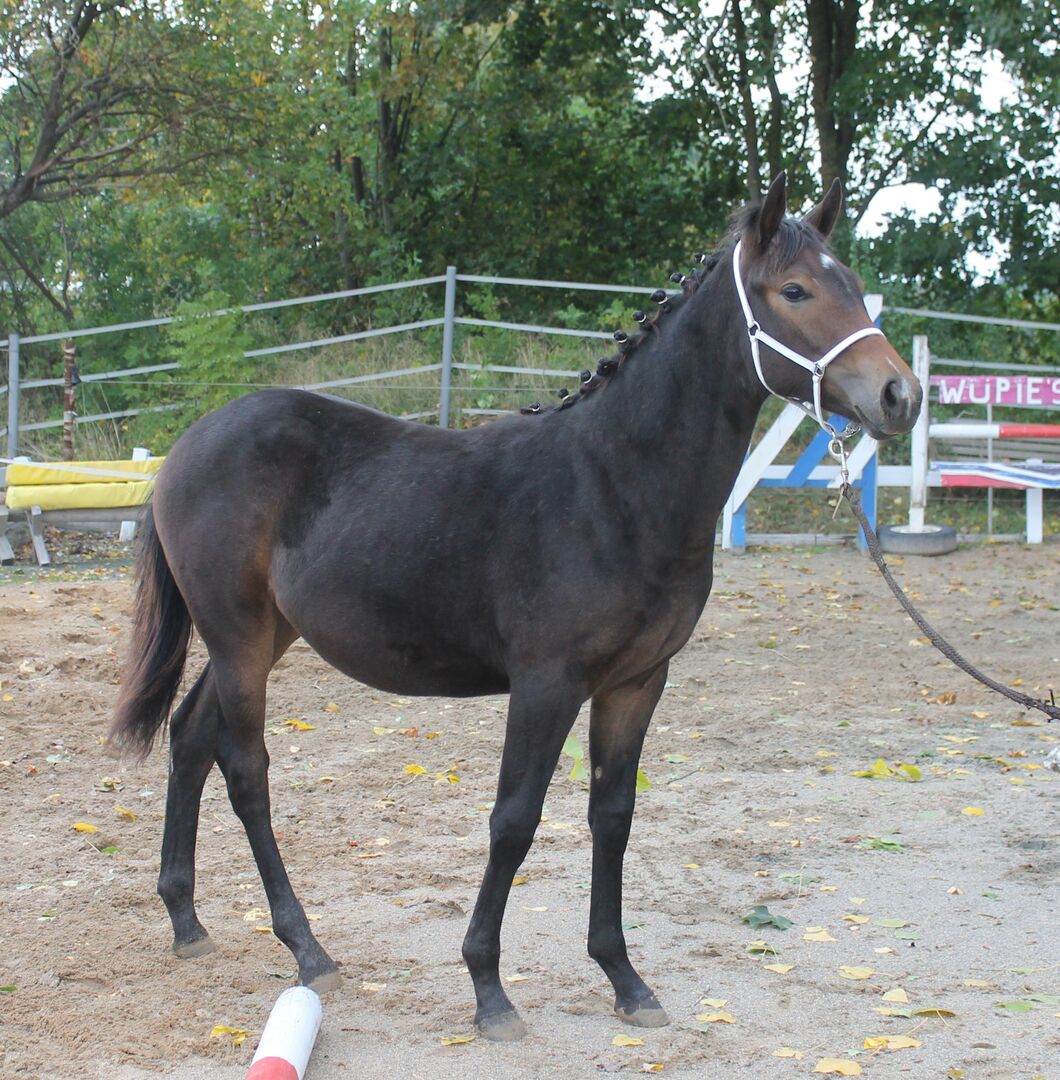 Nasz VIKTOR, ze swoją już niesamowicie gęstą i długą grzywą, natychmiast przekonuje swoim bezczelnym i ciekawskim wyglądem oraz pasującym do niego charakterem. Pod względem budowy jest typem sportowym - celowo dopracowanym przez matkę pełnej krwi. Ma cudownie delikatną twarz i zawsze zachowuje zimną krew w każdej sytuacji. Imponuje ciekawością połączoną z odpowiednim temperamentem, postawą i prezencją, ale przede wszystkim przyjazną i szczerą naturą. Jest całkowicie zorientowany na ludzi, słodki, uwielbia być pielęgnowany i przytulany wszędzie. Nie ma żadnych problemów z podnoszeniem kopyt, drapaniem ich czy nawet z kowalem. Jest świeżo odstawiony od matki w połowie września 2025 r. i mógłby natychmiast się wyprowadzić. Jest wyszkolony w jeździe na uwiązie, u kowala i został kilkakrotnie odrobaczony. Nasz młodzieniec ma wszystko, czego potrzebuje, aby później dobrze się bawić i odnosić sukcesy w sporcie rekreacyjnym na wysokim poziomie