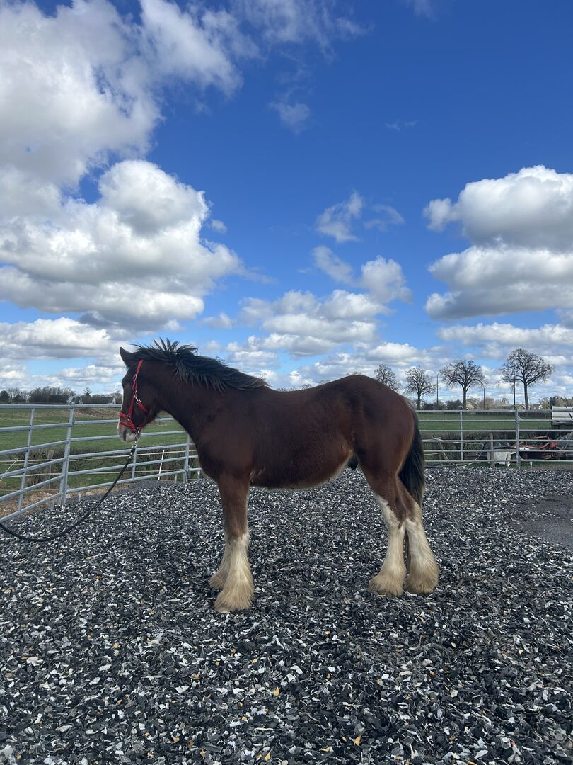 Na sprzedaż jest imponujący ogier rasy Shire Horse, urodzony w 2024 r. Ten wspaniały gniady ogier imponuje imponującym wzrostem 170 cm i potężną, solidną budową, która jest typowa dla rasy.