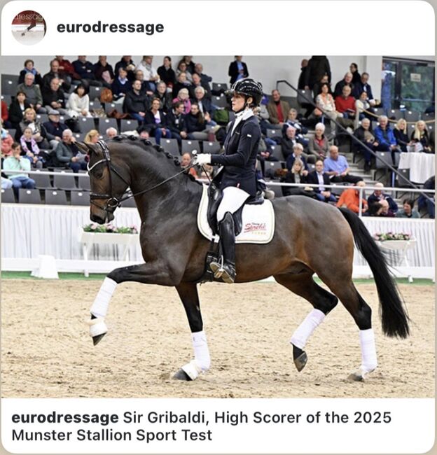 Ogier Sir Gribaldiego - Na sprzedaż jest topowy ogierek urodzony 26 czerwca 2025 r. Jego ojcem jest wyjątkowy ogier Sir Gribaldi ze stadniny Sprehe, który w testach uzyskał najwyższe noty - w tym 9,3 za jezdność, 9,0 za kłus i kłus oraz 9,2 za ogólne wrażenie. Jego rodowód poprzez Secret - Gribaldi - Buddenbrock, uzupełniony przez Weltmeyera i Lauries Crusador xx, oznacza najwyższą jakość ruchu, chęć do występów i sportowe perspektywy.