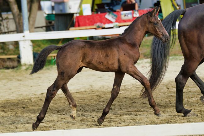 Ogierek już teraz imponuje harmonijną budową, wspaniałą ekspresją i żywymi, elastycznymi ruchami - najlepszymi warunkami do sportu i hodowli.