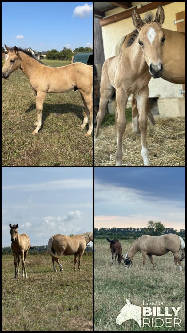 Ogierek rasy Quarter Horse o umaszczeniu kasztanowatym z dużą ilością podbudowy - Lokalizacja: 02699 Königswartha Docs Boomernic - ten piękny ogier rasy Quarter Horse już teraz zachwyca wszystkich swoim wspaniałym umaszczeniem, prawidłową, zwartą budową i oszałamiającym charakterem. Urodził się w 5.24 i szacuje się, że jego ostateczny wzrost wyniesie 152 cm. 5-panelowy n/n. Maluch będzie dorastał w stadzie z innymi końmi w tym samym wieku w otwartej stajni, będzie codziennie zaopatrywany w minerały i odrobaczany stosownie do wieku. Zapewni to podstawowe wymagania dla zdrowego rozwoju ścięgien, stawów i mięśni. Peter stoi na mocnych nogach i jest już bardzo dobrze umięśniony. Otwarty, przytulaśny, ciekawski i dobrze wychowany źrebak, który później stanie się świetnym partnerem do zawodów i rekreacji. W jego papierach można znaleźć Hollywood Dun It, Boomernic i Tabasco Cody. Dokumenty są już dostępne.