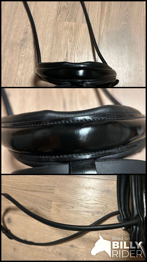 Okrągły, zszywany pasek na mostek - Sprzedam dobrze zachowany, szyty na okrągło nosek od Bridlery z patentowym noskiem. Stan bardzo dobry, brak uszkodzeń skóry i lakieru. Rozmiar to warmblood.