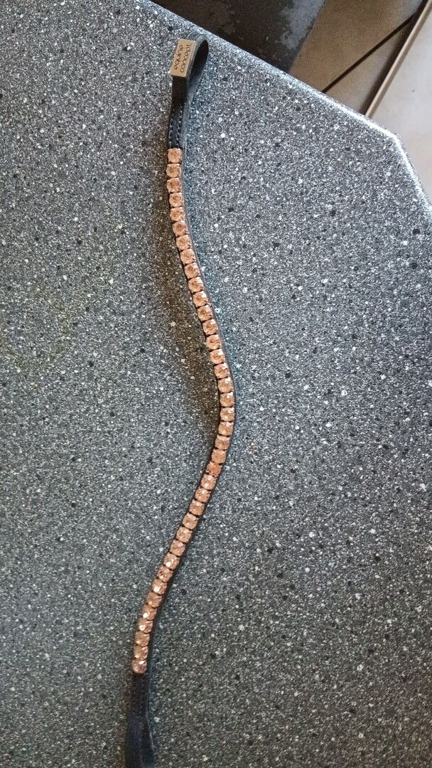 Opaska do brwi w kolorze różowego złota - Na sprzedaż piękna opaska do brwi w rozmiarze WB LEDER czarna . Brakuje 1 kamienia, który z pewnością można dokupić później.