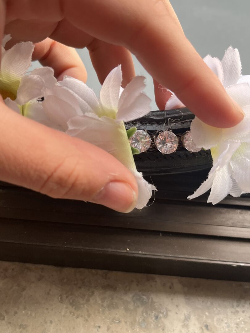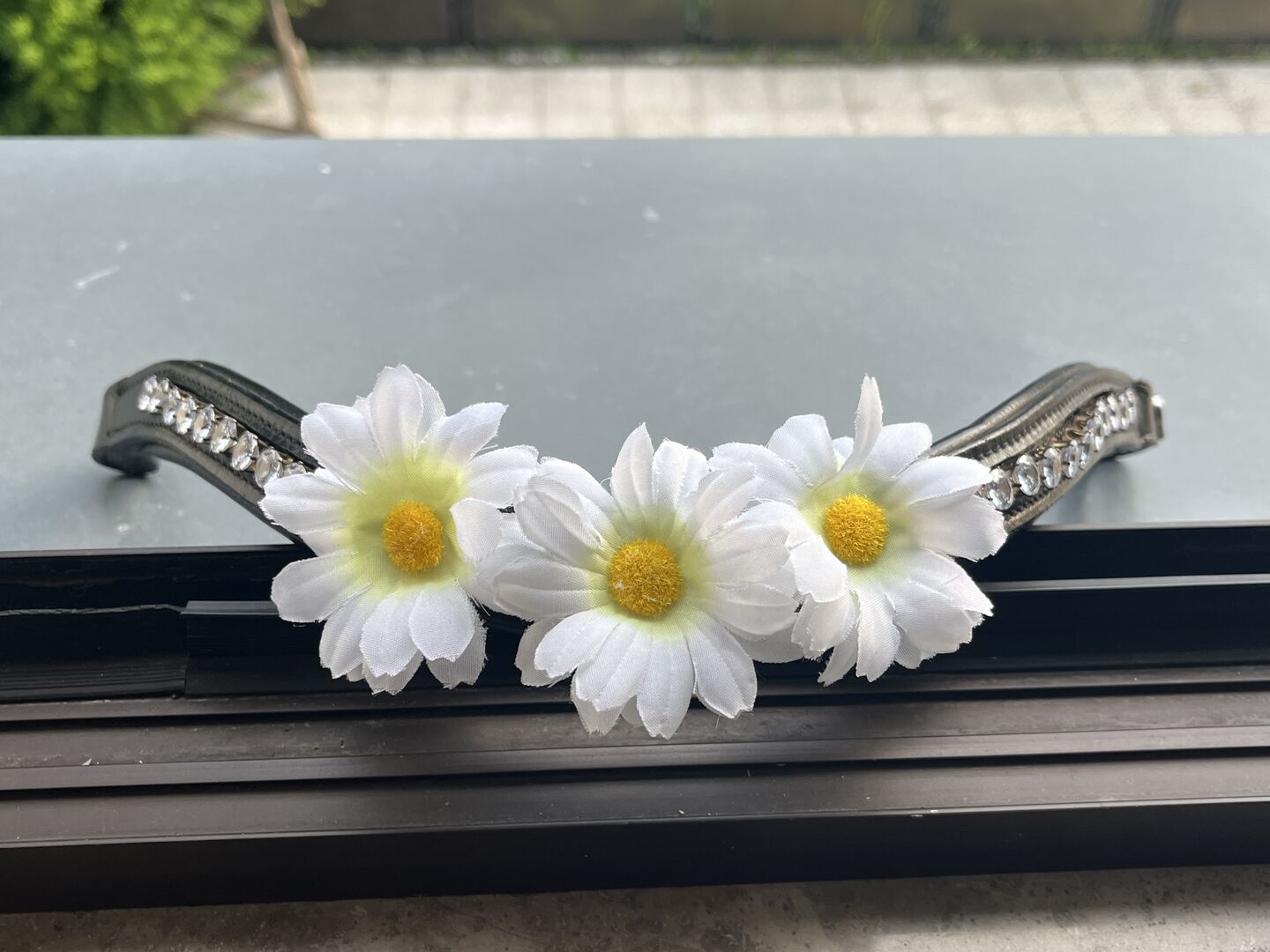 Opaska na brwi z brokatem i kwiatami - Opaska jest praktycznie nowa i była używana tylko raz do zdjęć.