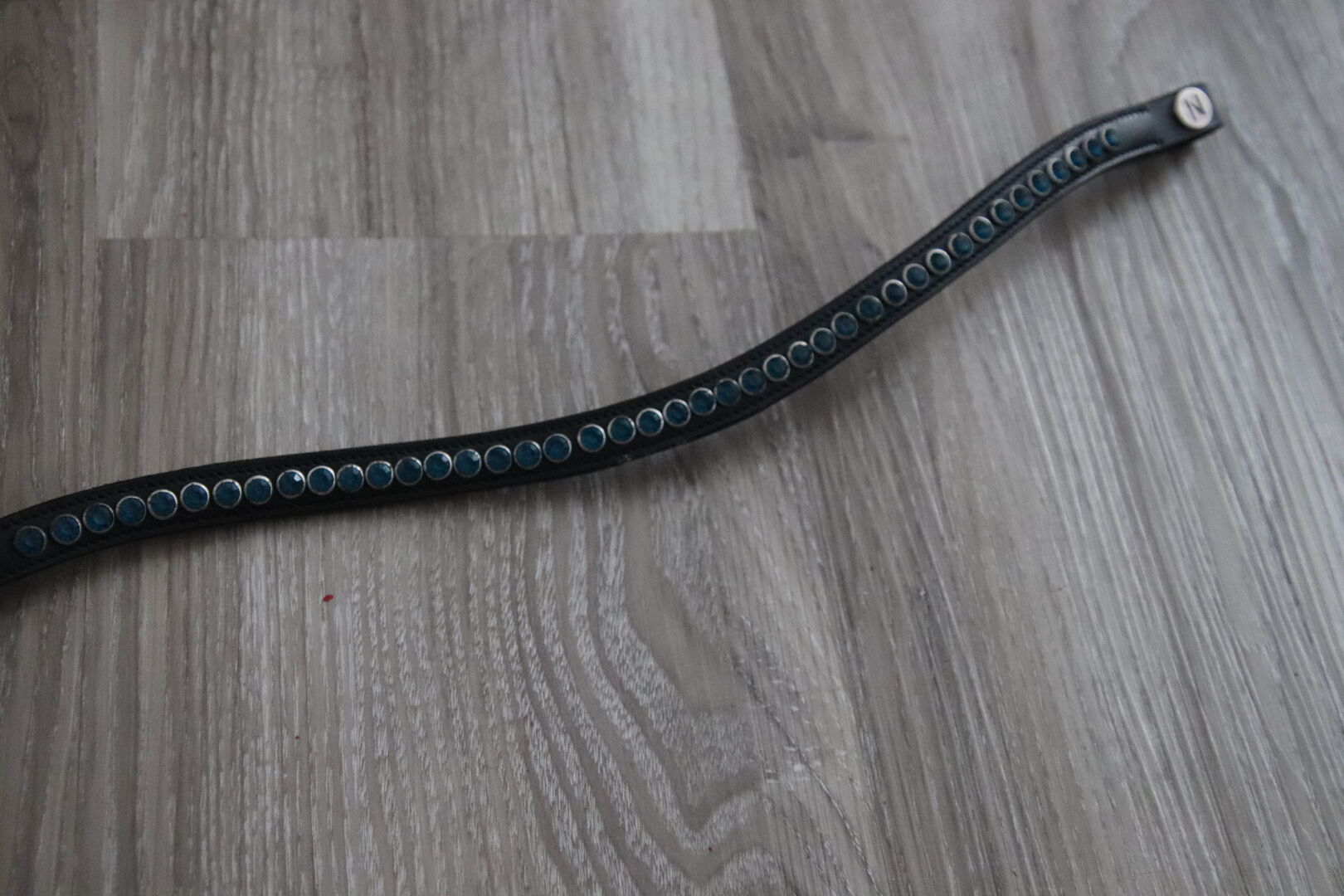 Opaska na oczy - Stan bardzo dobry. Czarny z niebieskimi, brokatowymi kamieniami