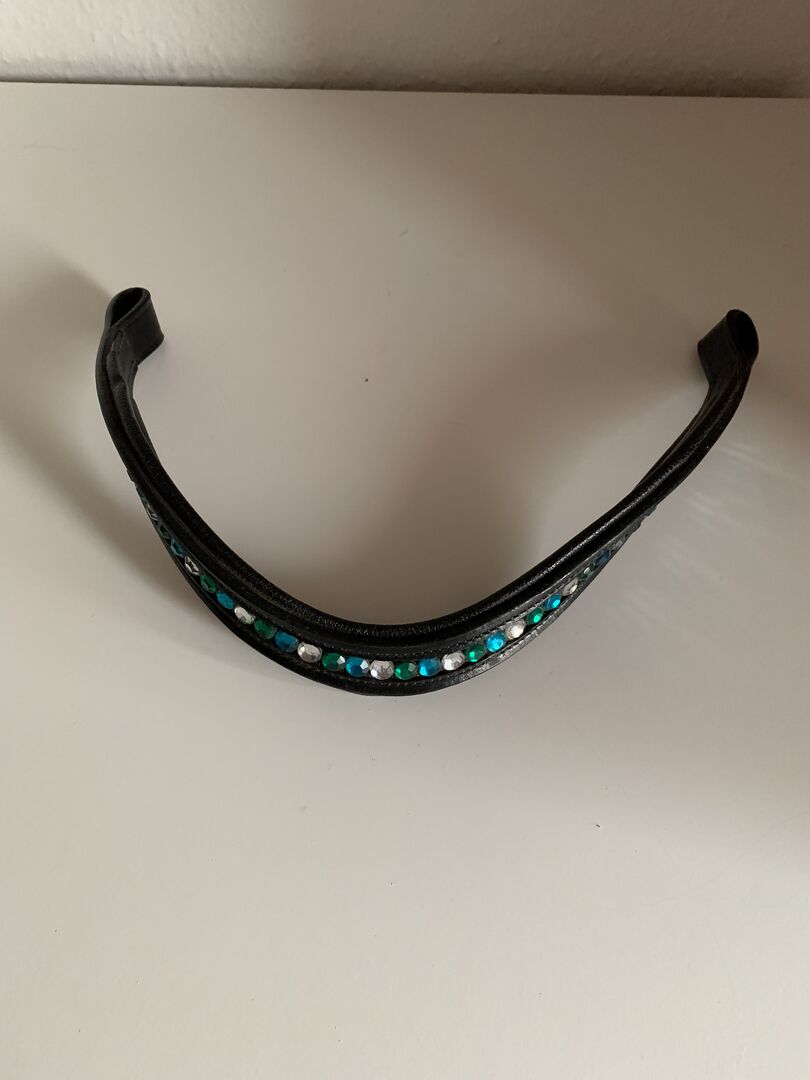 Opaska na włosy z mosiądzu - Kupiony jako zamiennik i nigdy nie był używany. Dlatego też był on nowy, leżał w szafce razem z innymi końmi. Idealnie pasował na mojego polskiego, ciężkiego warmblooda. Patrz zdjęcie, ale jest to ta sama opaska w innych kolorach.