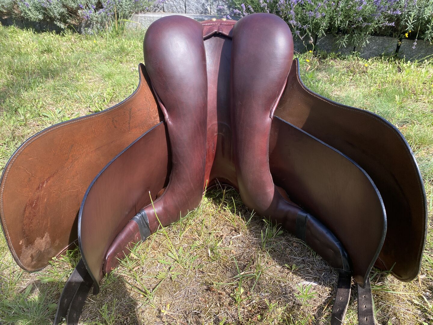 Sprzedaję siodło tanio, ponieważ skróciłam końce podkładki dla mojego konia. Są one teraz przyszyte i przyklejone z powrotem (patrz zdjęcia).