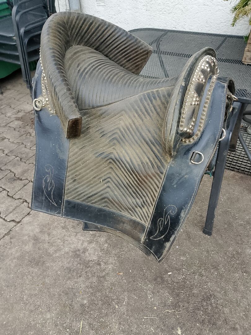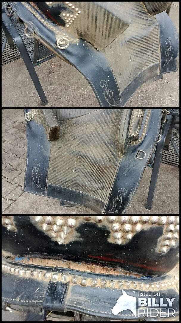 Oryginalne hiszpańskie siodło do dekoracji lub naprawy - Z tyłu pod siedzeniem wypadły gwoździe, poza tym używane, ale w doskonałym stanie. Plus wysyłka