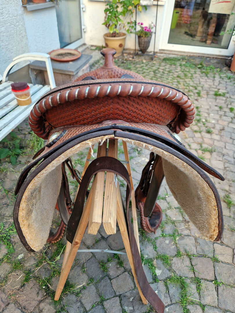 Oryginalne siodło Continental Western Show Saddle, Classic Ider AL USA, - Oryginalne siodło westernowe Continental, Classic Ider AL USA, nr 183 Ślady użytkowania współmierne do wieku, srebrne okucia można jeszcze wypolerować, doskonałe wykonanie, mocna skóra. wszystkie popręgi są w doskonałym stanie, strzemiona itp. również, patrz zdjęcia....