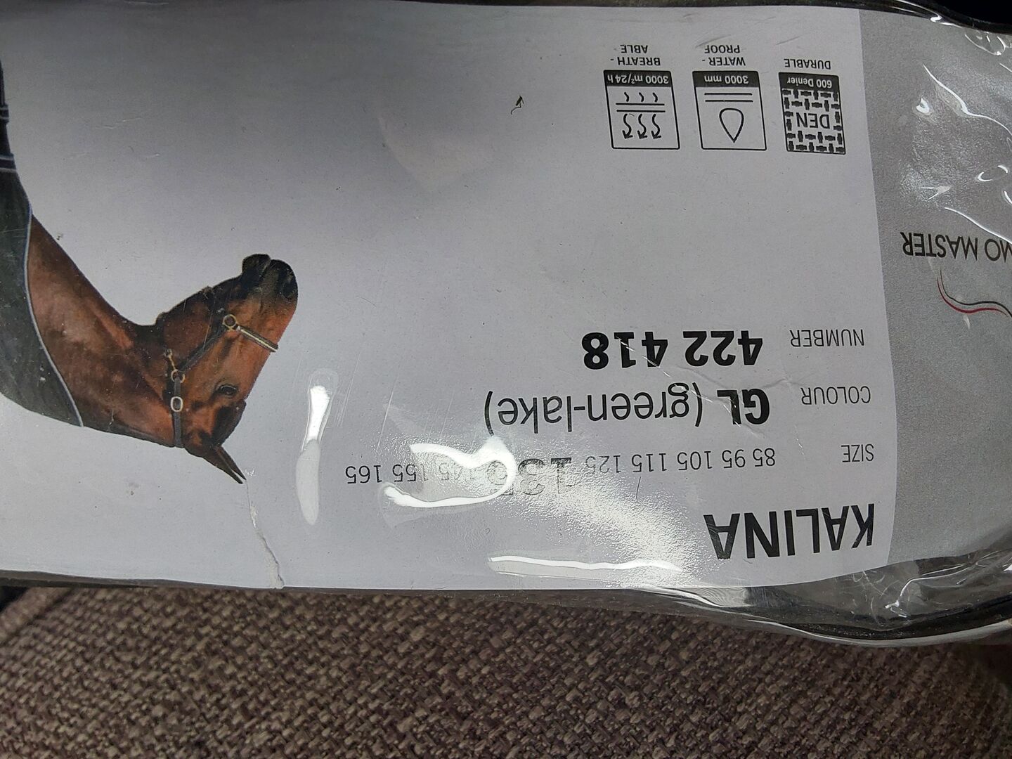 Osłona przeciwdeszczowa 135, patrz opis - Koc był kiedyś na koniu. Nie prana, ponieważ sprzedaliśmy konia, derka nie jest już potrzebna. Derka jest w świetnym stanie, ale jest sprzedawana w korzystnej cenie ze względu na 2 rozdarcia na derce po obu stronach sprzączki. Można je jednak zszyć. Koń prawdopodobnie utknął na wybiegu. Jeśli ktoś nie ma tyle pieniędzy i chce tanią derkę, to będzie idealna. Szkoda wyrzucać, bo poza tym jest topowa. Bez pętli na nogę