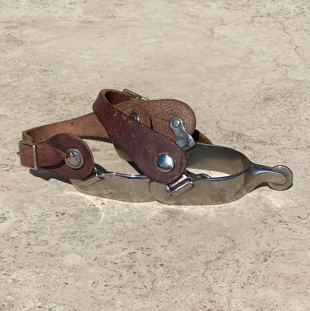 Roy Texan-style spurs. Stainless steel, with leather straps. Made in Texas from original Roy molds. 70 euros per pair