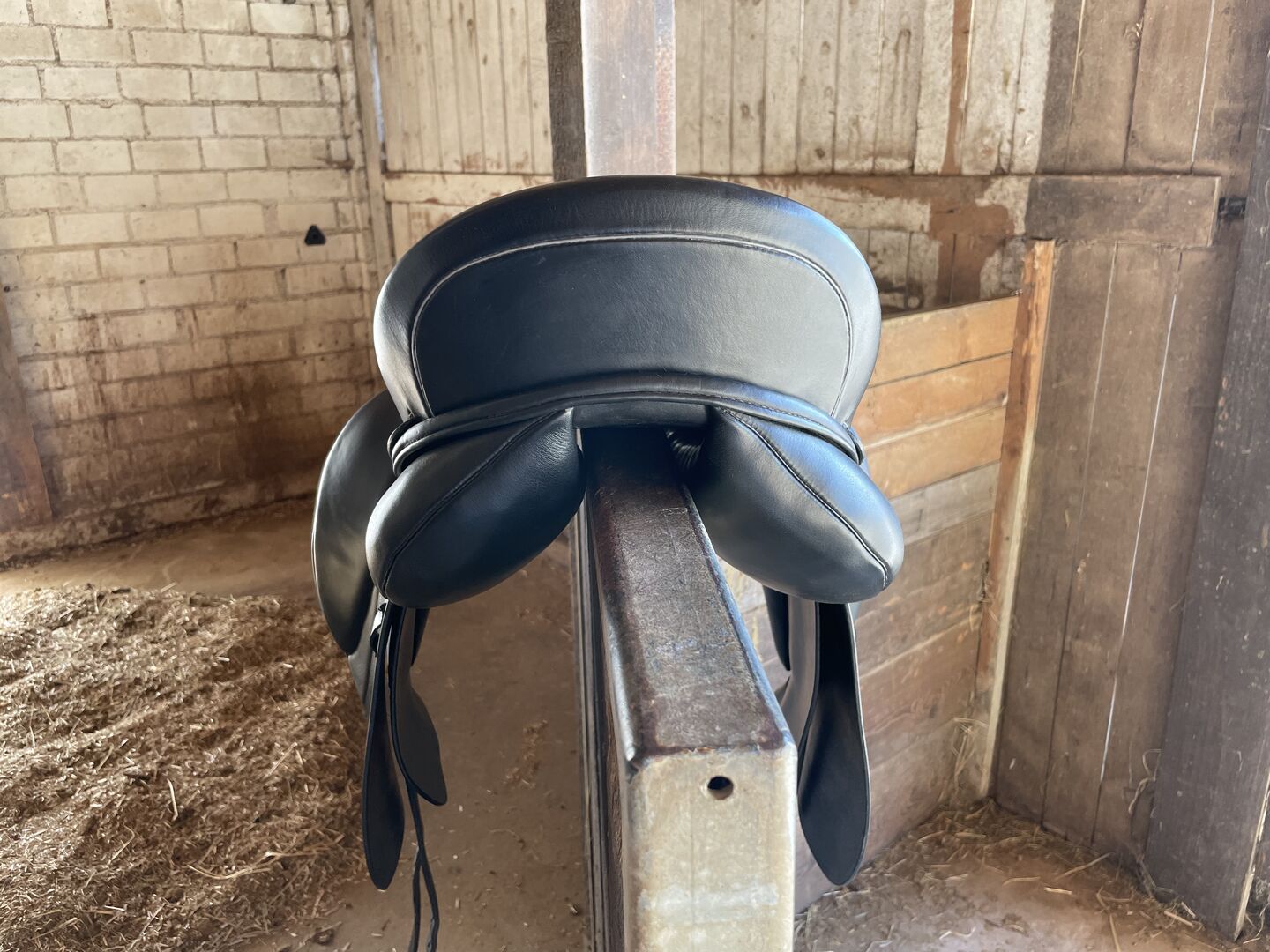 Otto Schumacher Siodło ujeżdżeniowe Fusion II 2, 17,5 cala - Sprzedaż bardzo dobrze zachowanego siodła ujeżdżeniowego firmy Otto Schumacher. Wyściółka jest również w świetnym stanie i nadal bardzo miękka. Model : Fusion II feel good Rozmiar siedziska: 3 (17,5 cala) Szerokość zatoki: 32 Rok produkcji: 2017 (jeszcze ok. 5 lat gwarancji na drzewo siodła) NP wynosiła 2.850€