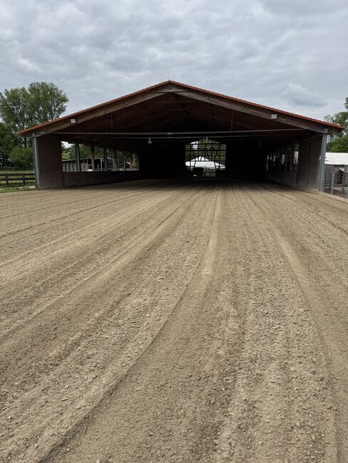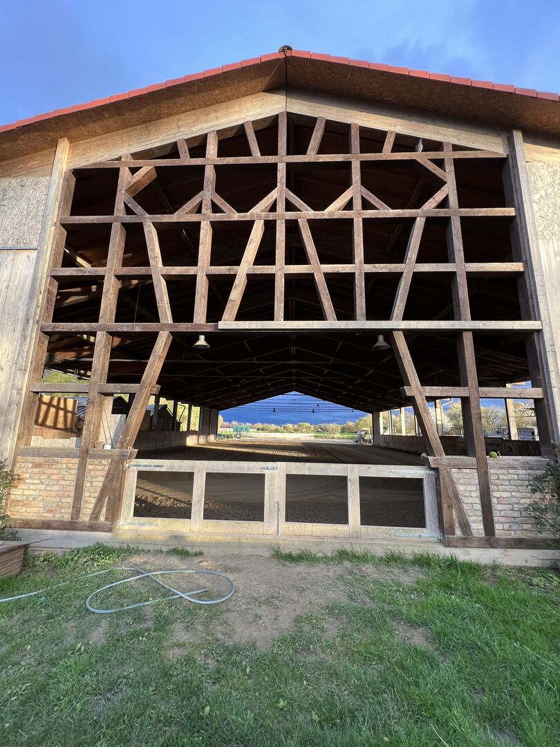 Otwarta stabilna przestrzeń - Restrukturyzujemy się! Czy chcesz trzymać konia we własnej otwartej stajni i nadal cieszyć się luksusem ośrodka jeździeckiego? W takim razie trafiłeś we właściwe miejsce. Co oferujemy: - Otwartą stajnię dla co najmniej 5 koni - Krytą ujeżdżalnię o wymiarach 42 na 23 metry (z areną zewnętrzną o długości 70 metrów) - Zadaszony okrągły kojec - strefa mycia - solarium - boks solankowy - Podgrzewane samonawadniające się koryto Możliwe jest również leczenie konia za pomocą naszego Vet-Mag (Pulsed ElectroMagnetic Fields - PEMF). Siano można nabyć u nas Brak planu hali lub podobnego. Jesteśmy małą społecznością jeźdźców rekreacyjnych i szukamy podobnie myślących ludzi. Nasza cicha lokalizacja z bezpośrednim dostępem do rozległych terenów jest idealna na długie przejażdżki.