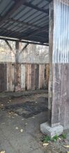 Otwarta stajnia na sprzedaż do demontażu - Na sprzedaż duża otwarta stajnia z grubymi belkami, drewnianą ramą, blachą trapezową i lekkimi panelami do samodzielnego demontażu. Stajnia ma wysokość ok. 3 metrów, ok. 6 metrów długości i 3 metry szerokości.