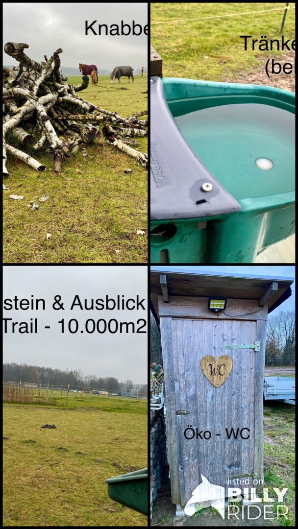 Czego możesz od nas oczekiwać - wliczone w cenę: ⭐️ Szlak o powierzchni 10 000 m2, na którym może przebywać maksymalnie 6 koni ⭐️ Podgrzewane poidło z próbkowaną wodą ze studni ⭐️ Zadaszony stojak na siano 2x3m ⭐️ Pomieszczenie na siodło zabezpieczone przed mrozem ⭐️ Bezpieczne, stabilne ogrodzenie elektryczne (gniazdo zasilania) ⭐️ Wiata pastwiskowa ⭐️ Roundpen (oświetlony) ⭐️ Ujeżdżalnia 20x40m (oświetlona) ⭐️ Parcour / trening umiejętności i strachu ⭐️ Biotoaleta ⭐️ Przyjazny dla koni wysiew na szlaku ⭐️ Fantastyczny teren do jazdy konnej z farmy, w tym dostęp do jeziora ⭐️ Miejsce parkingowe dla przyczepy lub powozu ⭐️ Zbiornik na obornik wraz z odbiorem obornika ❤️ przyjaźni ludzie koni.