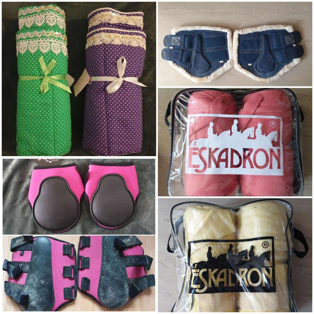 Eskadron Bandages WB// 15€ Bandaże Eskadron Pony SOLD Podkład zielony lub fioletowy// 15€ za sztukę Getry z futerkiem Riderschoice// 10€ Zestaw getrów Gera różowy// 20€