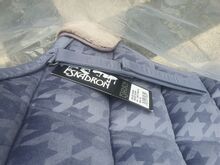 - nieużywana podkładka pod siodło firmy Eskadron, Velvet Big Square w VS, kolor doveblue. Niestety nie posiadam już odpowiedniego siodła skokowego. - niebieskie getry H1 od Gera, 1 para, nowe - ciemnoniebieskie buty dla kucyka od Gera, 1 para, nowe - granatowe getry ze sztucznym futerkiem i brokatem od Busse, nowe, rozmiar L - Big Square DL ciemnoniebieski/brązowy, często używany, kolor wyblakł i widać zużycie w okolicy popręgu - Zestaw 4 niebieskich bandaży firmy Eskadron, warmblood, używane. Niestety nie są całkowicie czyste. Torba jest niestety uszkodzona.