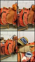 Pakiet letni - 5 pomarańczowych poduszek pod siodło, derka i akcesoria - Sprzedaję kompletny zestaw ochraniaczy na siodło w pięknych różnych odcieniach pomarańczy, których używałam do jazdy ujeżdżeniowej