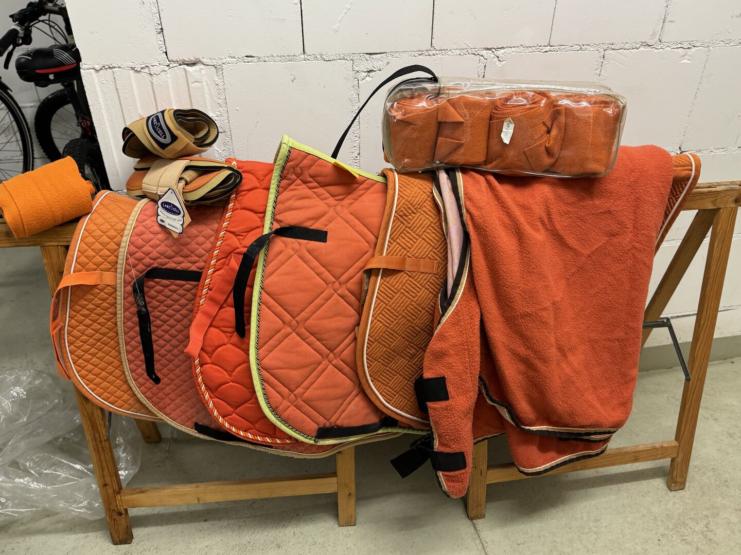 Szacunkowa wartość przy zakupie pojedynczo wynosi 160 € Nowe przedmioty są nieużywane, używane przedmioty są w dobrym stanie. Idealne dla każdego, kto chce wyposażyć swojego konia w stylowy pomarańczowy kolor! Lub do podzielenia się z przyjaciółmi ze stajni 🧡