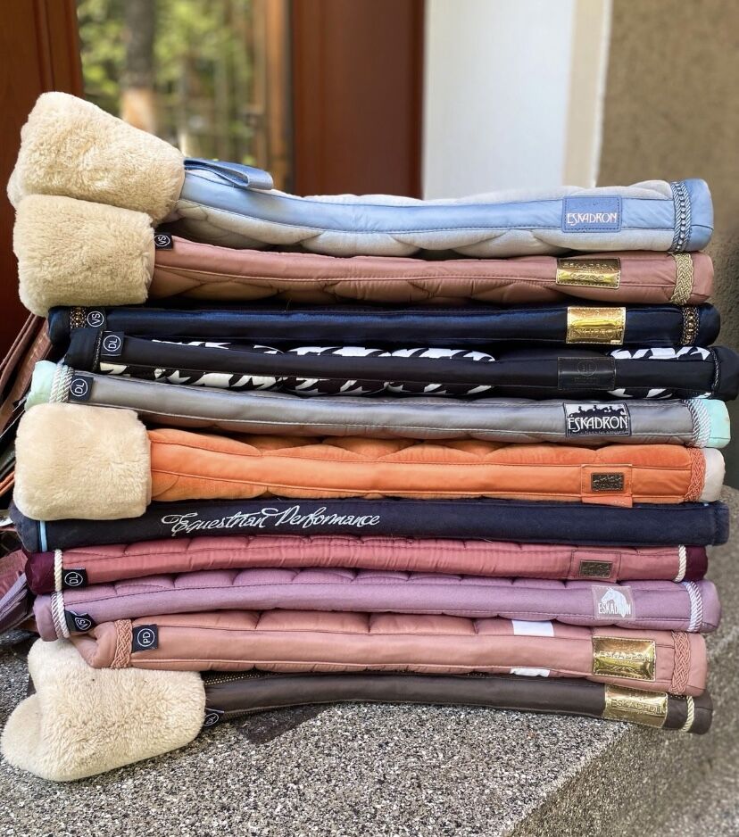 Pakiet niespodzianka/ eskadronowe podkładki pod siodło/ akcesoria/ uzdy... itp. - Odkąd nie mam już swojego konia, Sprzedaję tu stare rzeczy jako paczki-niespodzianki. Jest dużo rzeczy dla jeźdźca (również normalne ubrania typu jeansy itp.) jak i dla konia, również wiele markowych rzeczy, które układam indywidualnie dla Was. W zależności od wielkości wybranej paczki, może się w niej znaleźć wiele przedmiotów kolekcjonerskich z eskadronu, Ascot itp.