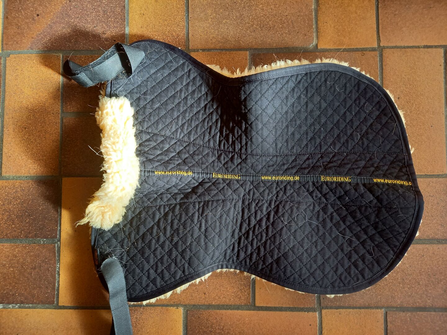 Panel siodła ze skóry jagnięcej od Euroriding +++ z kanałem kręgosłupa - Na sprzedaż podkładka pod siodło ze skóry jagnięcej od Euroriding, z kanałem kręgosłupa i futrzanym pierścieniem z przodu, a także zapięciem na rzep / paskami