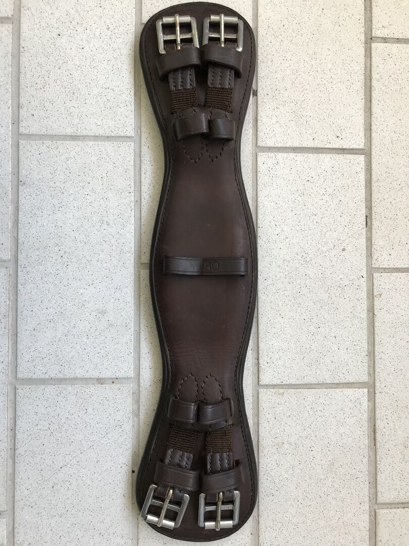 Pas Skórzany Krótki Obwód brązowy 50 cm - Skórzany krótki pas, anatomicznie ukształtowany, brązowy, 50 cm, używany, ale w bardzo dobrym stanie, brak rdzy na sprzączkach, wysyłka jako mała paczka DHL za 3,80 €.