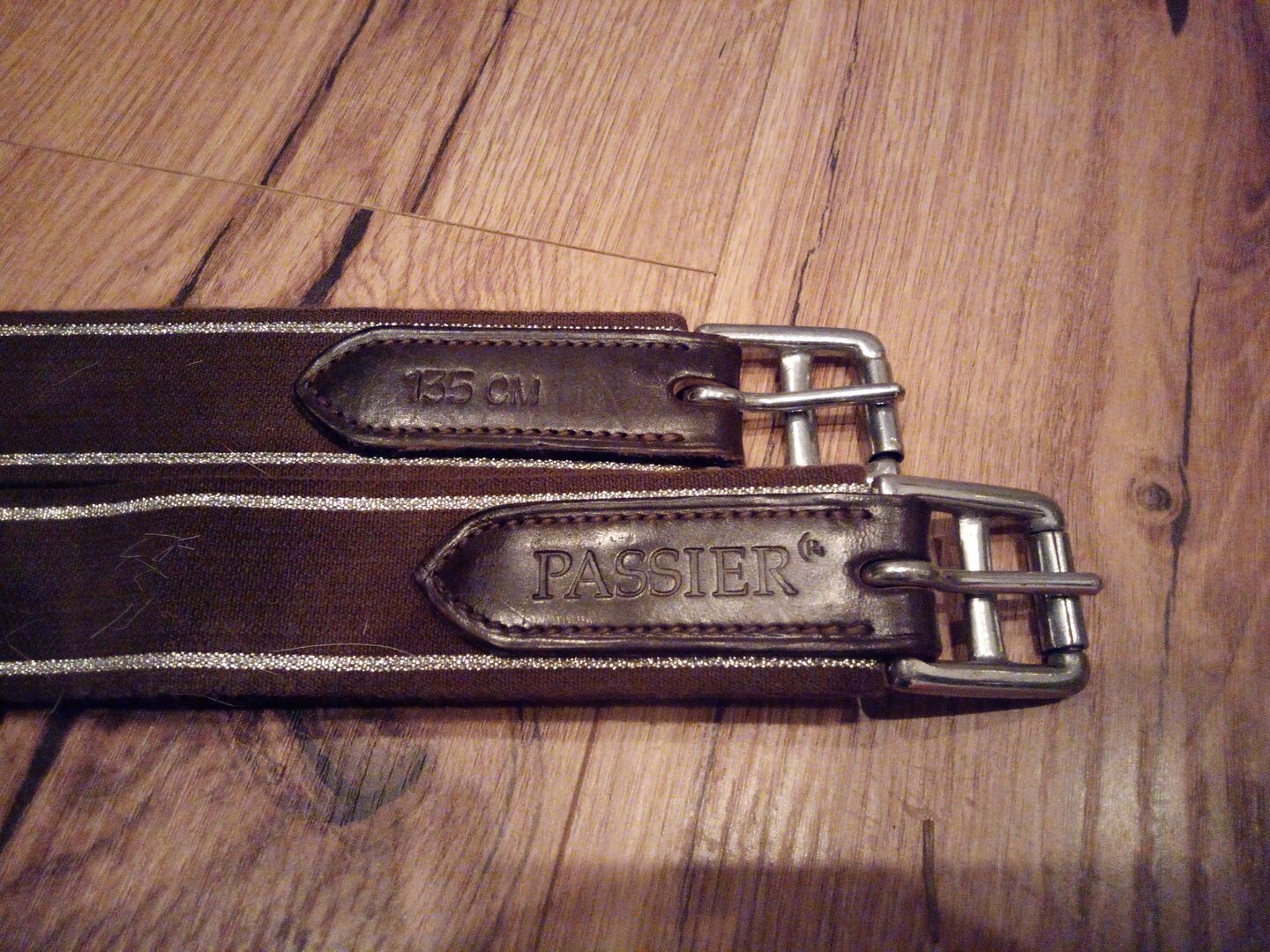 Pasek z ćwiekami Havana brązowy - Sprzedam nieużywany, jak nowy popręg Passier z ochraniaczem na kolce w kolorze Havana. Długość 135cm Niestety nigdy go nie używałam, ponieważ był trochę za krótki na mojego konia.