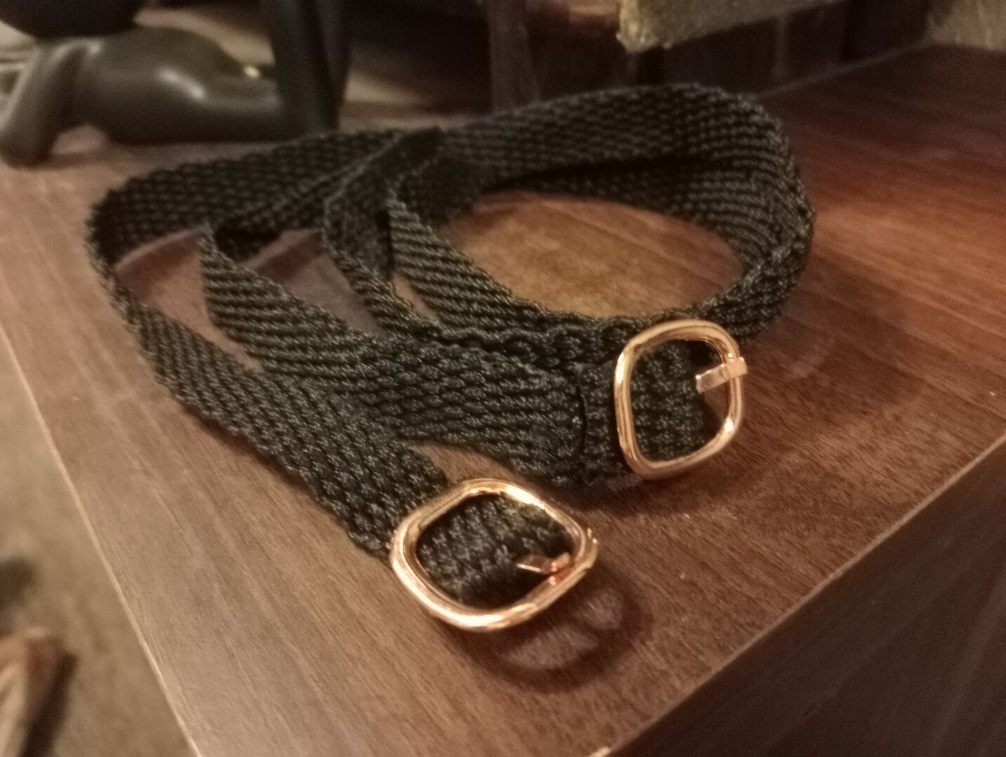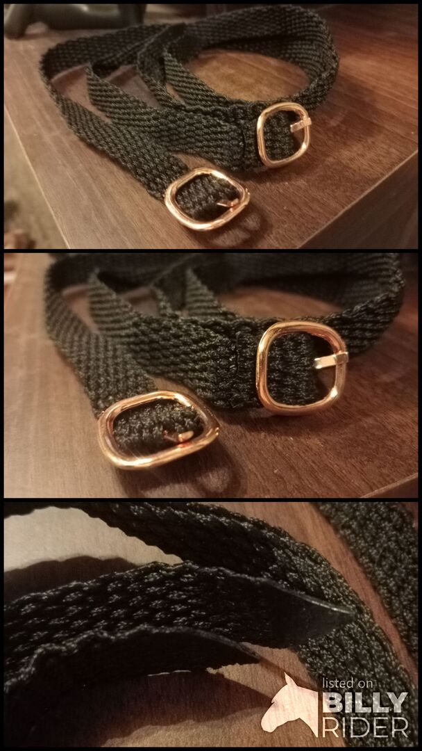 Paski ostrogi różowe złoto/czarne - Nowe, nigdy nie używane, sprzączki w kolorze różowego złota, czarne paski.
