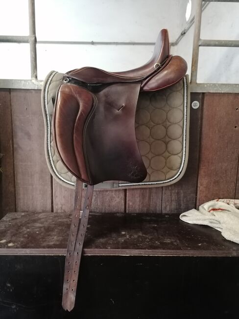 Paso Doble, 18 cali - Na sprzedaż Paso Doble, 18 cali Siodło ma szeroki kanał grzbietowy, bardzo miękką wyściółkę, szeroką komorę (ok. 35), panele Velcro i jest bardzo wygodne do siedzenia. Płyta wpustowa jest wymienna i może być regulowana na zimno Siodło zostało opracowane z myślą o jeździectwie roboczym. Kupiłem je w kwietniu 2023 roku. NP 4000€ 3400 € FP Możliwa wysyłka na terenie Niemiec z DHL. Chętnie odpowiem na pytania. ✌️