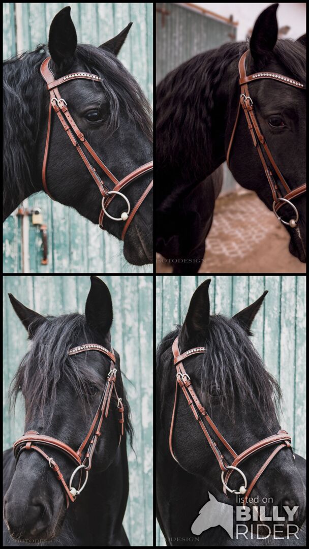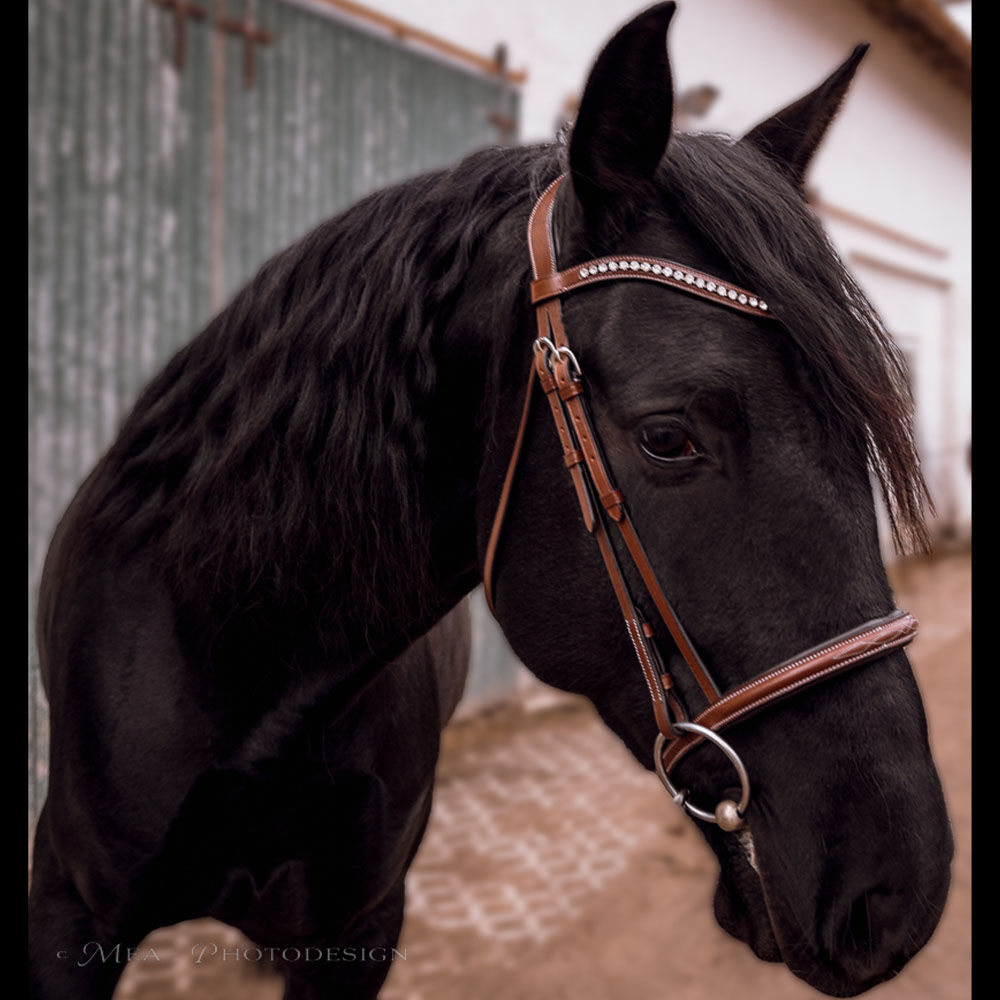 PASSION BAROCK CUSTOM DESIGN & STYLE - PB Bridle Sevilla Brown Avantgarde PB Bridle Sevilla brown jest wykonany z luksusowej, elastycznej skóry, aby zapewnić wysoki poziom komfortu. Okucia mają mosiężne wykończenie, a pasek na brwi jest ozdobiony stylowymi syntetycznymi diamentami. Pasek na nos jest również wystawnie wyściełany, a naczółek pozwala na dodatkowy komfort dla konia. Renifery wykonane są z tkanej wstążki ze skórzanymi stoperami na końcach.