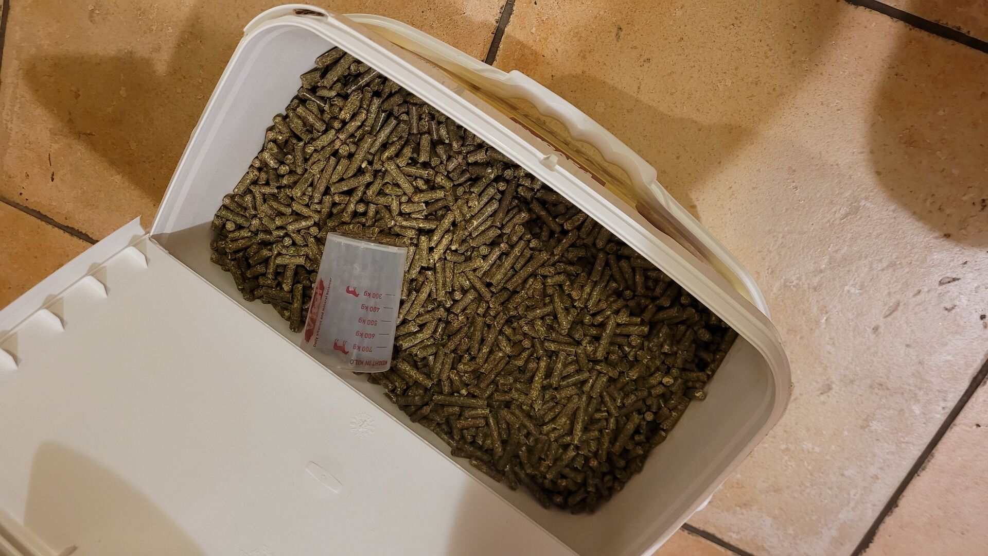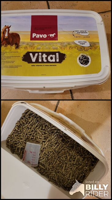 Pasza mineralna Pavo Vital - Otwarte wiadro karmy mineralnej Pavo Vital. Wciąż zawiera około 5,7 kg. Było przechowywane w chłodnym, ciemnym miejscu.