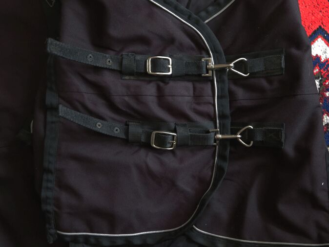 Die Decke ist frisch gereinigt, dies professionell mit Imprägnierung. Sie wurde in Summe nur 1 x gereinigt (inkl. Vorreinigung), somit noch absolut wasserdicht und besonders ideal für Pferde, welche geschoren oder den ganzen Tag im Freien sind.