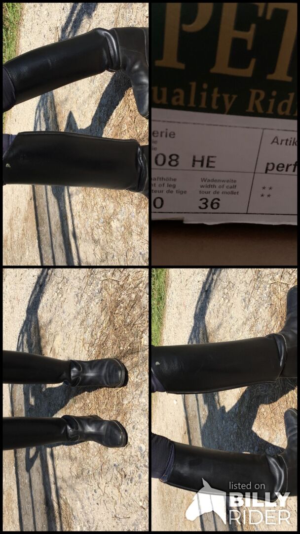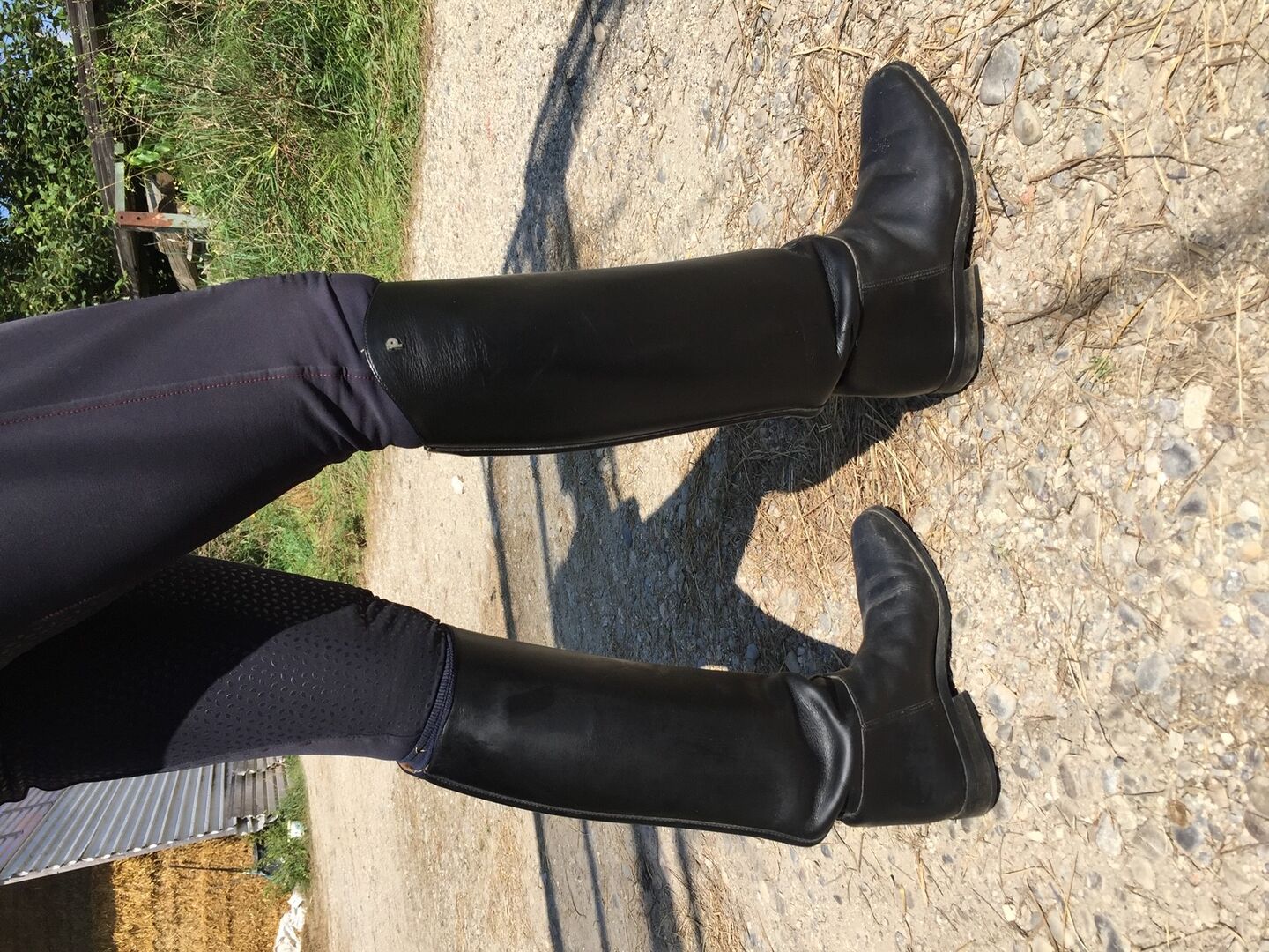 Petri doskonałe skórzane buty do jazdy konnej rozmiar 7 - 38 - Sprzedaję moje skórzane buty jeździeckie Petri perfect w rozmiarze 38. Wysokość trzonu wynosi 50, a szerokość łydki 36. Buty są już założone, ale w dobrym stanie.