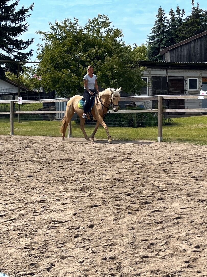 Piękna 6-letnia klacz palomino na sprzedaż - Witam Na sprzedaż jest nasza 6 letnia super dobrze ujeżdżona klacz Frida Frida jest super chętna do nauki i do wszystkiego co ma Lubi jeździć w teren i jest tam też po prostu super dobrze wychowana i niezawodna bezpieczna na drodze i w ruchu.....na kursie kończy dobry poziom E/A ....sie może być również ujeżdżona super dobrze wychowana przez słabszych jeźdźców lub dzieci....she już opanowała mniejsze skoki z latającymi kolorami ma dużo zabawy z wolną i naziemną pracą....Frida jest ze mną odkąd skończyła 1 rok zawsze była ze mną zdrowa jest regularnie szczepiona i odrobaczana kowal czy jazda z przyczepą nie stanowią dla niej problemu hiszpański chodzi w ręku i kładzie się na komendę używałam jej zabawowo w ciągu kilku dni Frida to put on hopper co nie stanowi problemu ze zdrowiem czy ogólnie tam ze mną zawsze była zdrowa i jest regularnie prezentowana TA W razie dalszych pytań lub poważnego zainteresowania proszę dzwonić 01736210832 LG Lisa