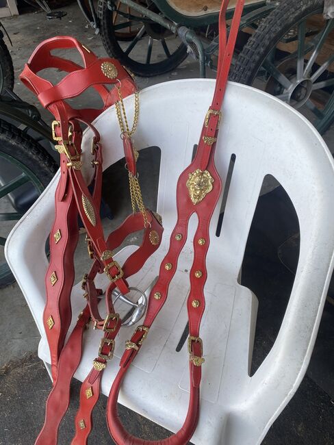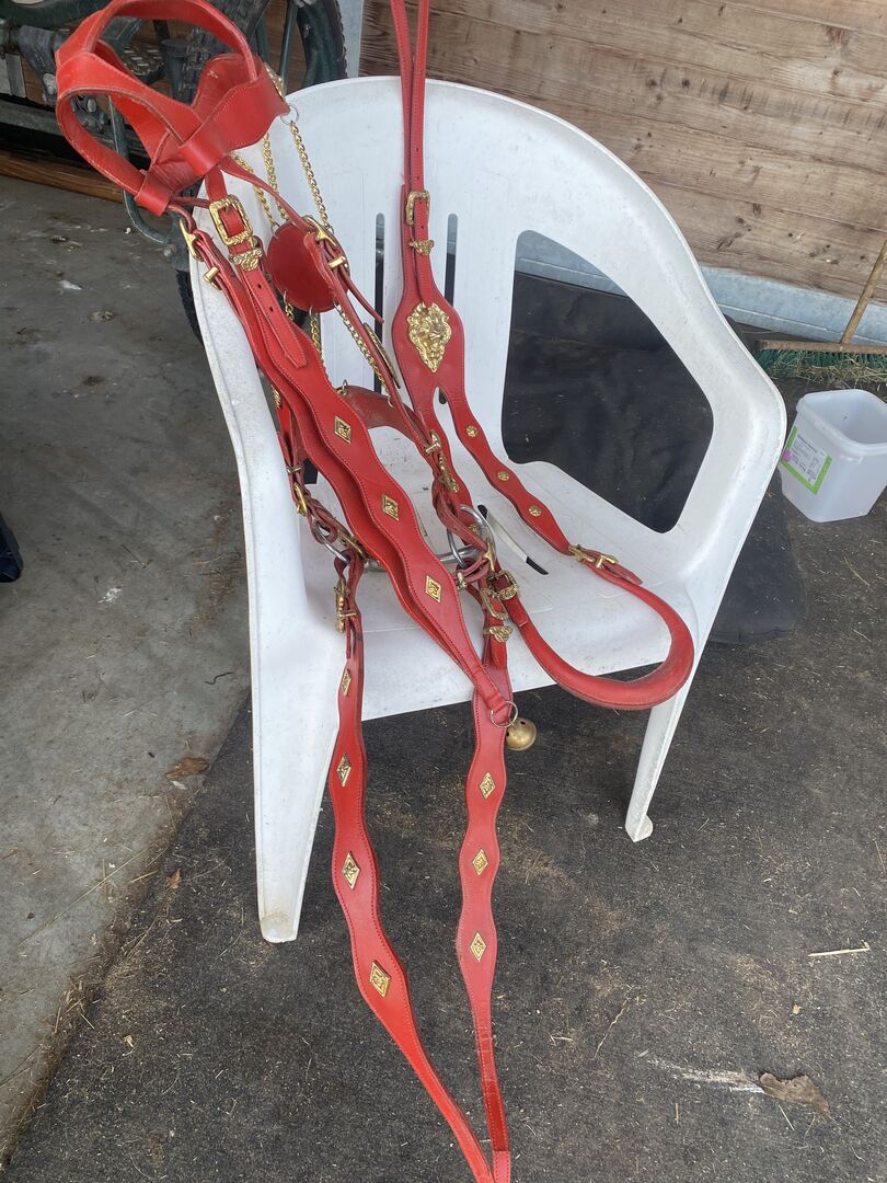 Piękna barokowa uzda w rozmiarze WB - Bardzo ładny karabińczyk barokowy z crupperem i dzwonkiem pod brodą. Stan bardzo dobry