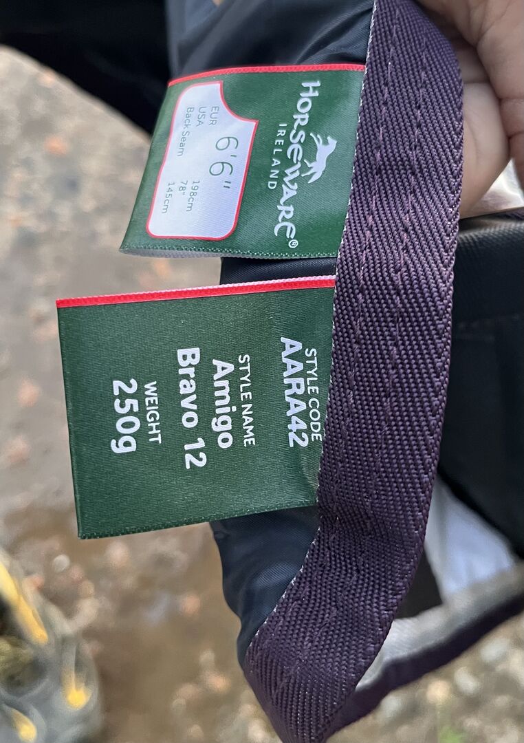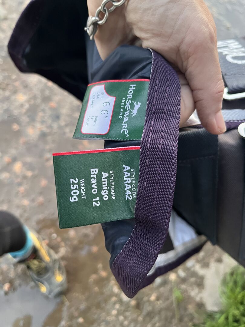 Piękna derka przeciwdeszczowa od Amigo Horseware - Ta piękna derka przeciwdeszczowa Amiga Bravo 12 była przez nas używana może dwa razy. Jest po prostu za mała dla mojego konia. Rozmiar 145cm Grubość 250g Kolor brązowy z niebieskimi/fioletowymi paskami i przeszyciami. Zapraszam do obejrzenia Amigo Horseware. Nowa cena to 180€ Derka posiada odblaski na zimowe spacery.