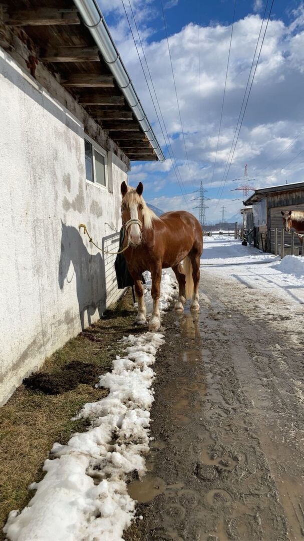 Piękna i urocza klacz Noriker na sprzedaż w najlepsze miejsce - Daisy skończy 8 lat w kwietniu, jest klaczą 2a i jest zarejestrowana jako matka ogiera w księdze stadnej. O niej samej: ma 1,68 cm wzrostu Pod względem charakteru Daisy jest super słodkim i miłym koniem, nawet w stadzie jest bardzo łagodnym koniem. Nie wykazuje żadnych złych zachowań, takich jak bicie, gryzienie, koziołkowanie itp. Jest wymarzona do pracy z dziećmi lub psami. Daisy jest bardzo nieskomplikowanym koniem, ale nadal potrzebuje jasności, granic i zaufania. Jeżdżę na niej tylko rekreacyjnie, ponieważ sama zaczęłam jeździć na Daisy jako początkująca, jest jeszcze wiele do zrobienia w jej treningu, zna zarówno pracę naziemną, jak i pracę na lonży i oczywiście jazdę na arenie, uwielbiamy jeździć w grupie lub samotnie z psem i jeździć po lesie. Daisy mieszka w otwartej stajni z 9 innymi końmi od dużych do małych. Chciałabym, aby w nowym domu miała szansę żyć w stadzie.