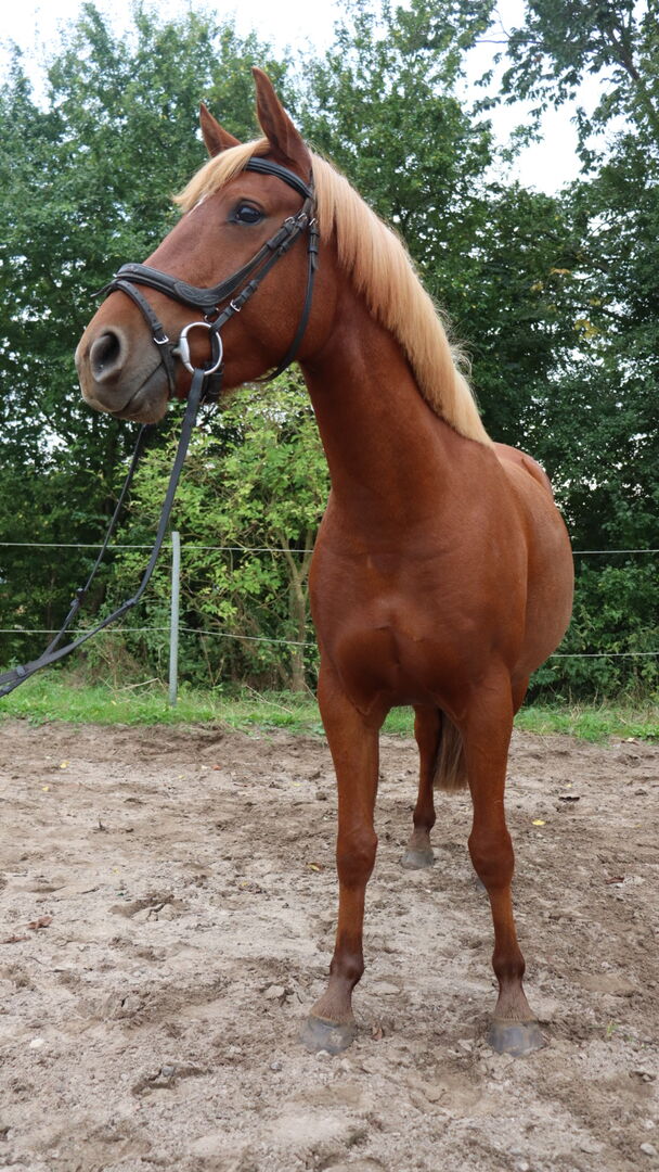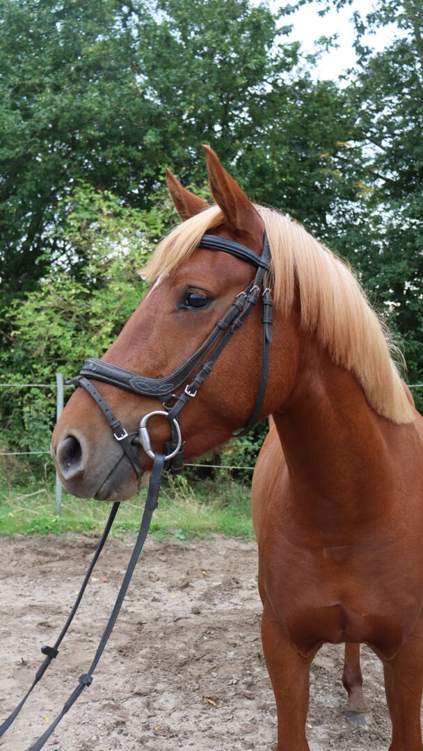 Ich verkaufe aufgrund von Bestandsverkleinerung meine 3 jährige Dt. Reitpony/Anglo Araber Mix Stute. Sie ist in allen drei Grundgangarten geritten, Schmiede- und verladefromm, geländesicher, auch schon am Strand geritten, sehr gut in vorschriftsmäßiger Longenarbeit, auch mit alternierende Stangen, in der Herde sozial mit allen, Geschlecht egal und Barhufer. In all der Zeit hat sie nie geblockt, gebuckelt oder ähnliches. Sie möchte viel Zuwendung, ist Menschen sehr zugewandt, sozial und freundlich. Im Springen macht sie sich auch gut, kennt auch Ringreiten schon. Der Galopp muss noch etwas herausgearbeitet werden, aktuell neigt sie noch etwas zum "hineinlaufen", sonst geht alles auf den Punkt. Auch Tempowechsel und Rückwärtsrichten machst sie schon brav.