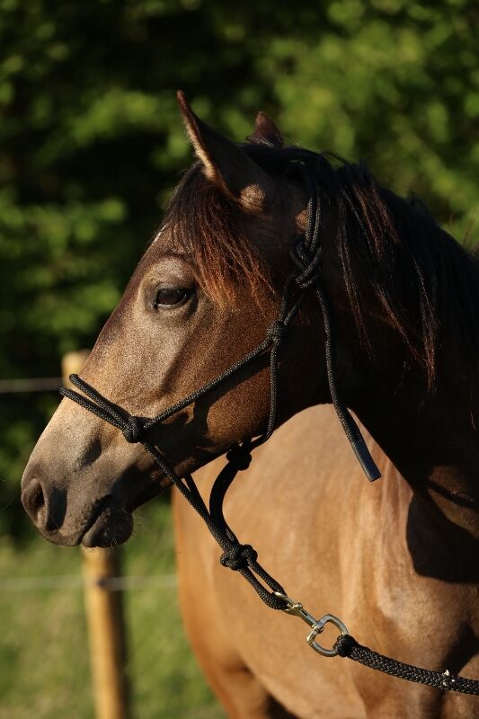 Piękna perspektywa reiningu - Daj się oczarować temu pięknemu ogierowi rasy Quarter Horse o wspaniałym umaszczeniu i bardzo poprawnej budowie. Wyróżnia się nie tylko wspaniałym umaszczeniem (ciemna buckskin), ale także wyjątkowym charakterem i bardzo dobrą budową. Elvis urodził się w 5/2022 r., a jego ostateczny wzrost szacuje się na 148-150 cm. Ogier jest bardzo zorientowany na ludzi, niezwykle ciekawski i całkowicie nieustraszony. Będzie dorastał w małej grupie ogierów, jest zdrowy, 5-panelowy n/n i regularnie szczepiony i odrobaczany. Elvis zna źrebięce ABC i jest wyszkolony w halterze. Ma pierwszorzędny rodowód reiningowy. Jego ojciec Twisten Two Step DR był z powodzeniem pokazywany i jest wnukiem Hollywood Dun It/Wimpys Little Step. Matka Elvisa jest bezpośrednią córką Hollywood Dun It. Jego pełne rodzeństwo już odnosi sukcesy w NRHA i EWU, a on sam już pokazuje świetny ruch i zmienia charakter. Później będzie dobrze nadawał się do zaawansowanej jazdy rekreacyjnej z ambicjami pokazowymi. Każdy, kto szuka niezawodnego, fajnego partnera, powinien spojrzeć na tego przystojnego chłopca. Lokalizacja: 55777 Berschweiler